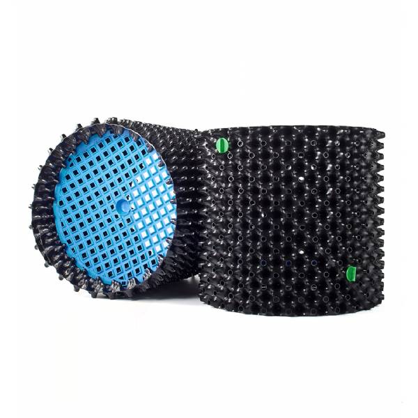 Prodotto in HDPE riciclato, Air-Pot è di sagoma circolare, con una parete perforata che è concepita come i cartoni delle uova. Non ci sono superfici piatte che portano le radici ad iniziare il processo di spiralizzazione.
