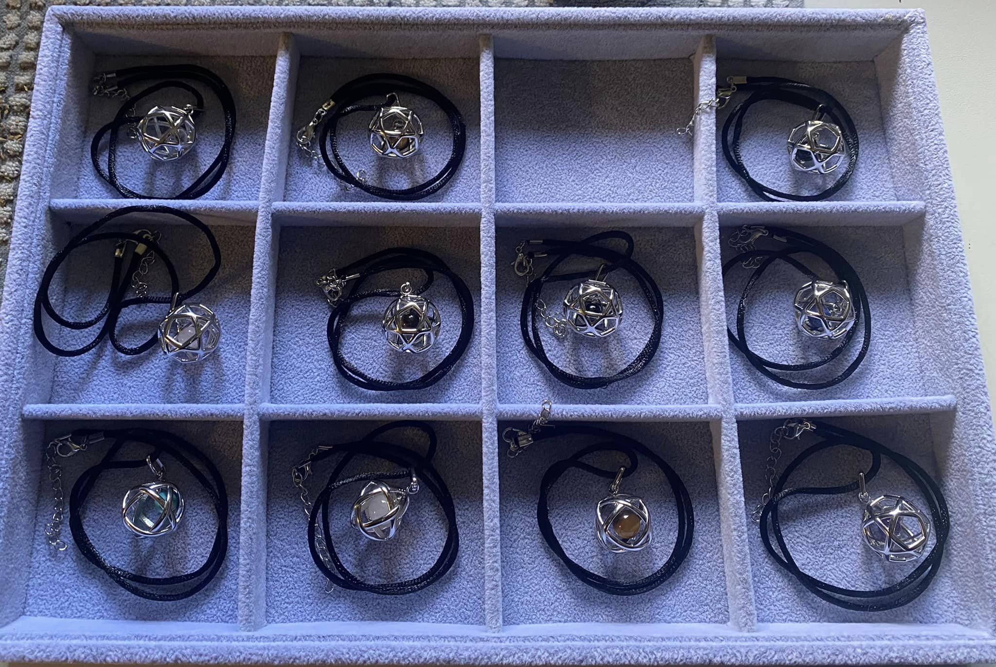 Genesa Cristal è realizzata in perfetta Proporzione Aurea e ha un raggio di azione di circa 10 mt intorno all’aura della persona  che la “Vive”, e ha una funzione  di protezione della stessa e propaga l’energia della pietra posta all’Interno.