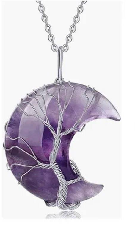 - Collana di cristallo curativo: filo per collana fatto a mano come albero della vita in argento con pendente luna, la collana in pietra originale è realizzata in gemma vera:quarzo, ametista, cristallo. Regalo perfetto per amante, amico, madre, padre, moglie, marito, fidanzata o fidanzato.