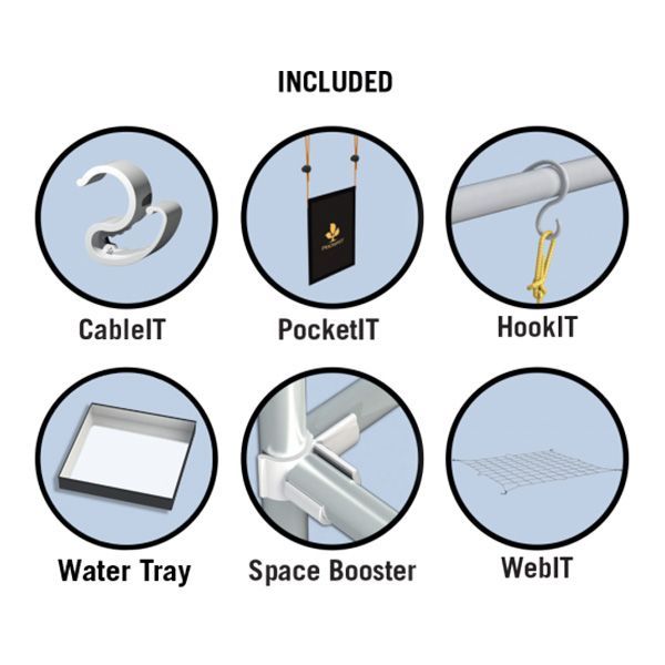 Struttura in metallo con angoli rinforzati per sostenere in sicurezza impianti di illuminazione e filtri a carboni attivi (fino a 30kg di peso). Predisposta per alloggiare 2 estrattori con diametro massimo di 250mm nella parte superiore e 2 introduttori (250mm) nella parte inferiore. Fornita di tutti gli accessori utili al coltivatore per ottimizzare lo spazio nell’area di coltivazione.
