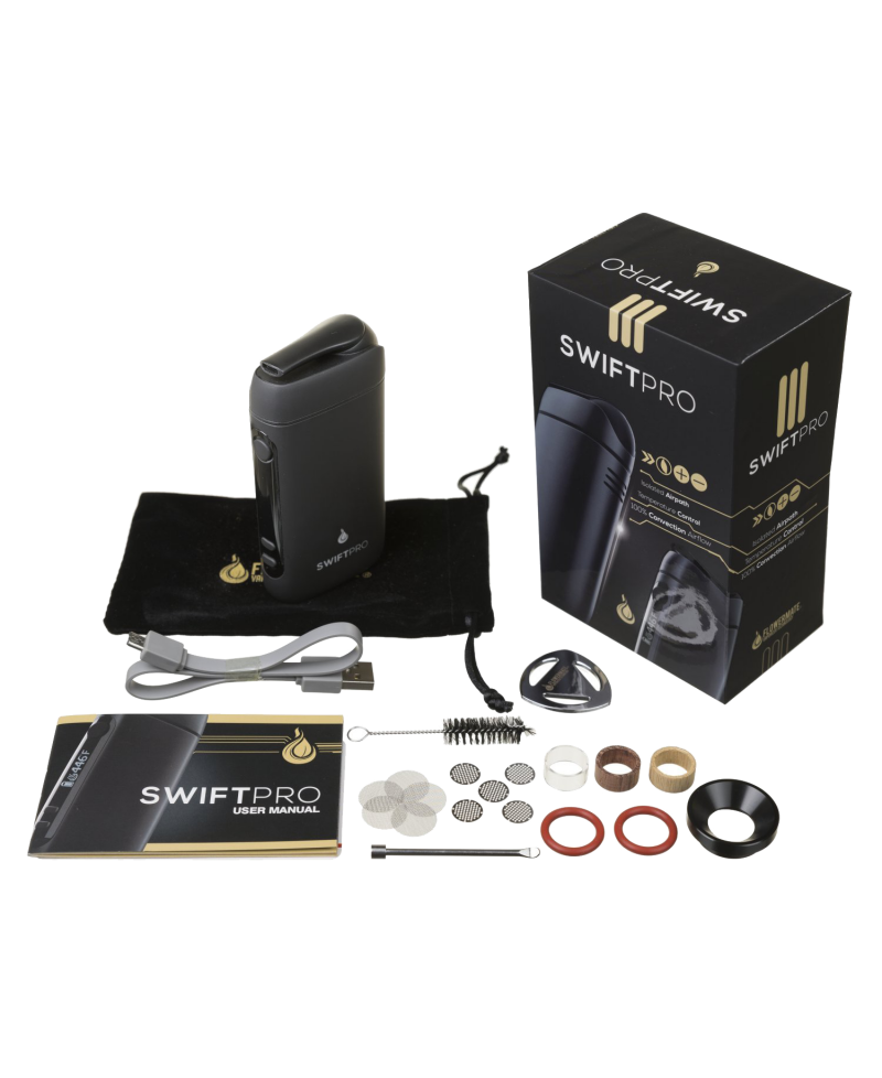 Il vaporizzatore Flowermate Swift Pro è la versione più recente rilasciata da Flowermate, una rinnovata industria si vaporizzatori. Mentre i modelli precedenti della serie Flowermate sembravano uguali e utilizzavano il riscaldamento della conduttura (attraverso le pareti della camera di riscaldamento), Swift Pro ha un design completamente rinnovato ed è il primo vaporizzatore portatile creato da Flowermate il quale riscalda le erbe attraverso la convenzione (un flusso d’aria calda). Il vaporizzatore Swift Pro dispone di tutte le caratteristiche che i fan di Flowermate amano – è piccolo, robusto e si riscalda molto velocemente. Grazie al riscaldamento a convezione, Swift Pro è un enorme passo avanti in termini di qualità ed efficienza del vapore. Hai solo bisogno di una piccola quantità di erbe, le quali rendono Flowermate Swift Pro uno dei dispositivi più economici sul mercato!
