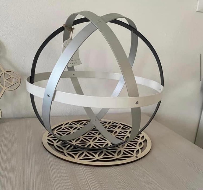 Un’evoluzione di questo strumento è la Pentasfera. Qual è la differenza tra Pentasfera e Genesa? Mentre quest’ultima è costruita con 4 cerchi, la Pentasfera è costruita con 6 cerchi, conformazione che crea differenti benefici e una qualità energetica più intesa. Adatta quindi a operatori più esperti.