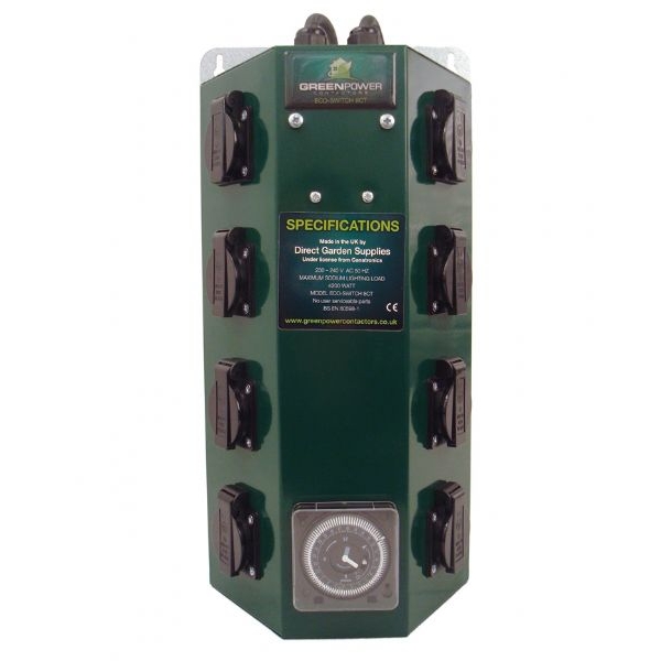 Il GreenPower a 8 vie con timer di Nutriculture è quadro elettrico professionale per il controllo delle lampade.