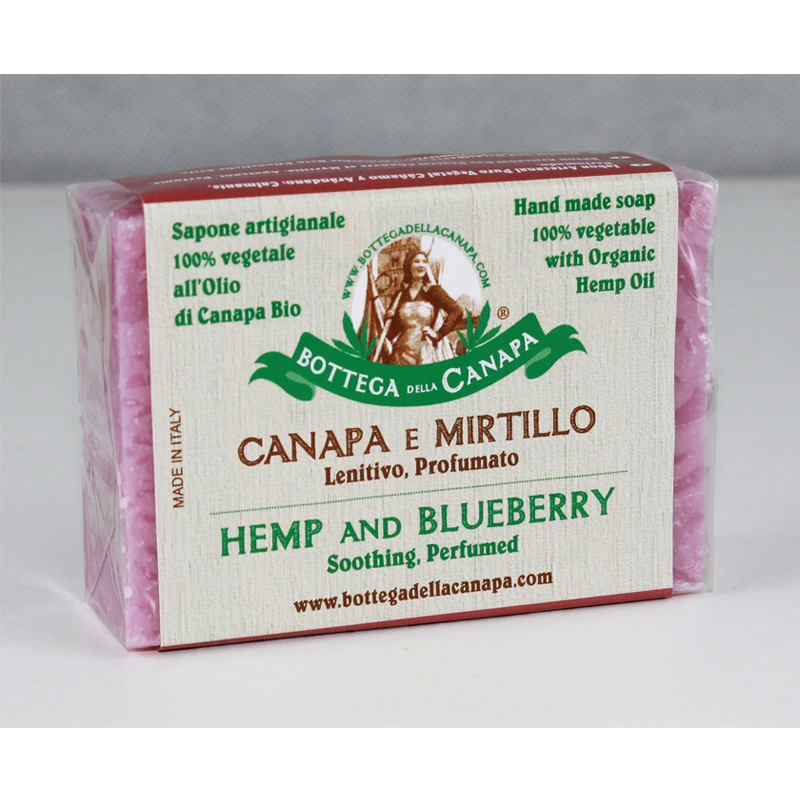 Sapone artigianale 100% vegetale all’ olio di canapa bio con mirtillo. Made in Italy.