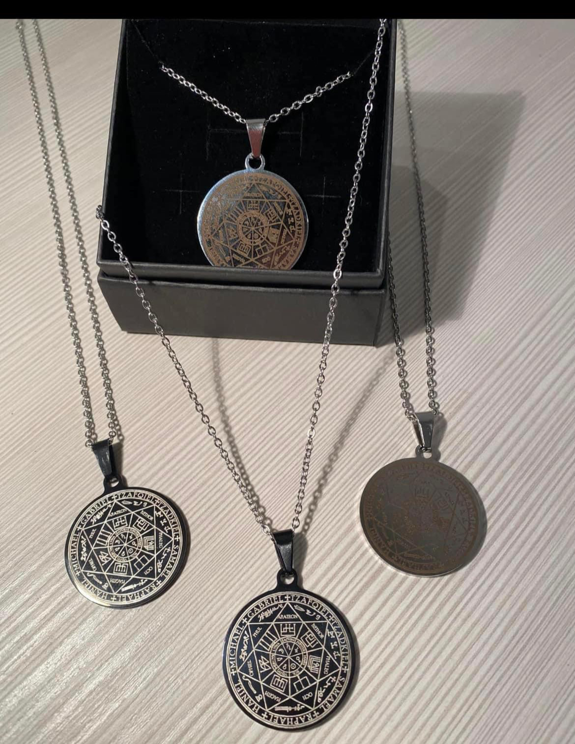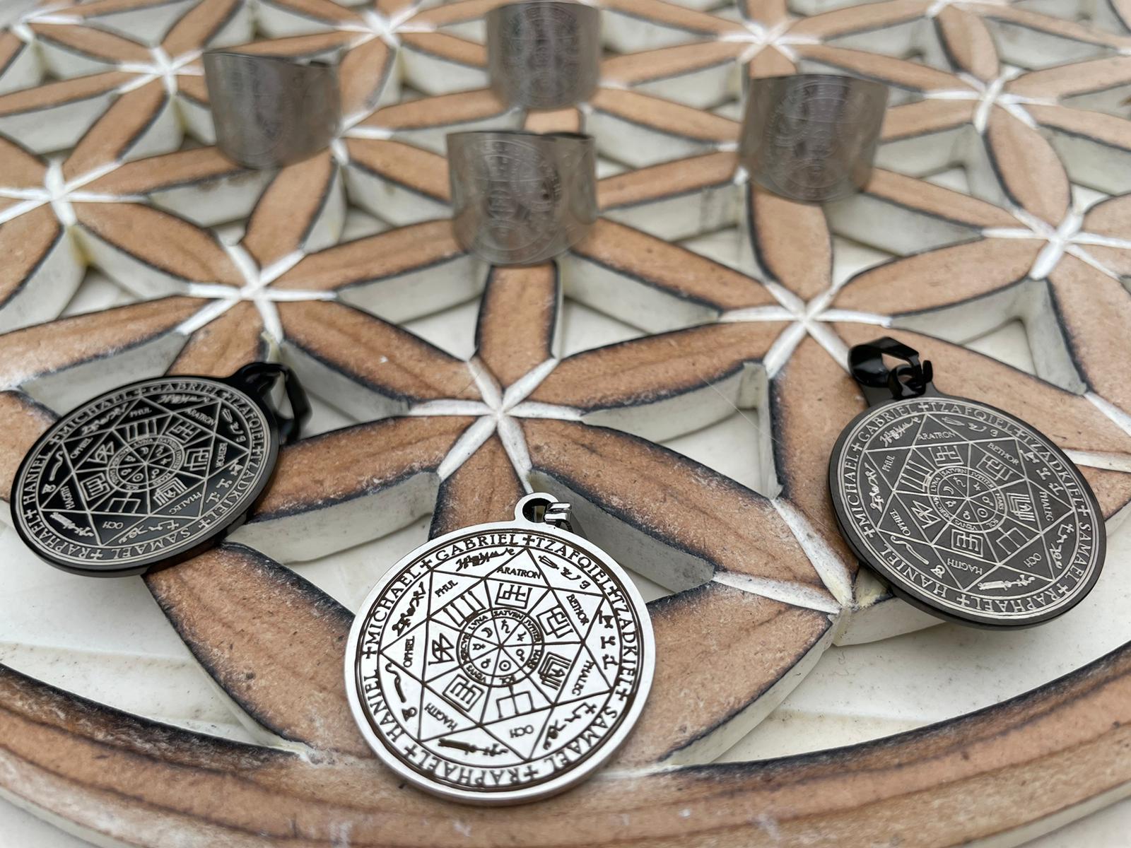 SIGILLO DEI 7 ARCANGELI ( Nel campo della pratica spirituale, la ricerca di appartenenza e connessione spinge spesso gli individui a cercare poteri superiori. Per coloro che cercano guida e protezione, i Sette Arcangeli sono da lungo tempo venerati come potenti esseri celesti. Si dice che la loro presenza offra conforto nei momenti di turbolenza e aiuti nella crescita personale. Ma come si può accedere alla loro energia divina? il sigillo dei sette arcangeli, un sigillo sacro che si ritiene possieda la capacità di attivare le profonde forze di queste entità celesti. Colori: I colori utilizzati nel sigillo, come oro, argento rappresentano diverse qualità spirituali. L’oro simboleggia la saggezza divina e l’illuminazione, mentre l’argento rappresenta la purezza e la chiarezza. Geometria sacra: I motivi geometrici presenti nel sigillo hanno un significato simbolico. I cerchi rappresentano l’unità e l’eternità, mentre i triangoli simboleggiano l’armonia e l’equilibrio ATTIVAZIONE DEL SIGILLO ( inclusa) Ciò include la creazione di uno spazio sacro, l’invocazione della protezione divina e l’utilizzo di vari strumenti come candele, cristalli e incenso. Eseguendo questi rituali con la massima concentrazione e intenzionalità, si può entrare in contatto con frequenze energetiche più elevate e connettersi con gli esseri celesti associati a ciascun arcangelo. Questo amuleto, chiamato anche Raggio Di Luce oltre a rappresentare la manifestazione delle potenze divine, rilascia vibrazioni celesti e racchiude le porte di accesso alle potenze dei 7 Arcangeli 😍 I 7 Arcangeli sono composti da: Michele: L’angelo della protezione. Gabriele: L’angelo della comunicazione. Tsafkiel: L’angelo della giustizia divina, guida le nostre azioni (agisce sul karma) Zadkiel: L’angelo che dona conforto. Samuel: L’angelo della serenità e delle buone intenzioni Raffaele: L’angelo della guarigione emotiva Haniel: L’angelo della realizzazione, aiuta a realizzarsi nella propria sfera personale. In poche parole un ciondolo colmo di importanza simbolica oltre che ottimo per riequilibrare l’energie positive allontanando le negative Utilizzalo come accessorio oppure portalo sempre con te anche in tasca o in borsa Scegli il tuo sigillo di forte protezione
