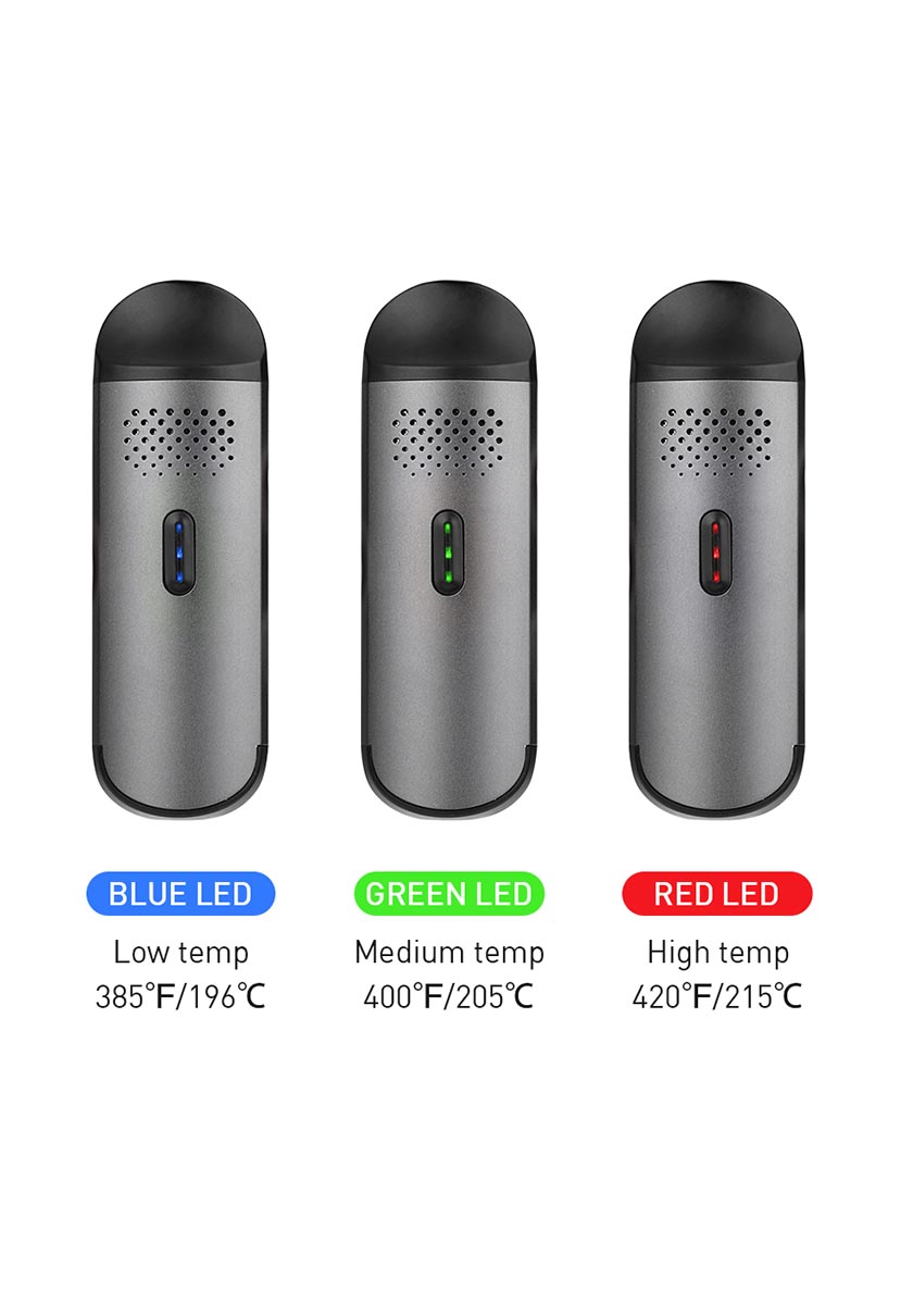 Il bocchino magnetico è dotato di un percorso di vaporizzazione in ceramica di zircone di grado medico. Il pratico comando a un pulsante fornisce il funzionamento più semplice e consente all’utente di passare rapidamente tra i tre livelli di temperatura di 196 ° C / 385 ° F (blu), 205 ° C / 400 ° F (verde) e 215 ° C / 420 ° F (rosso).